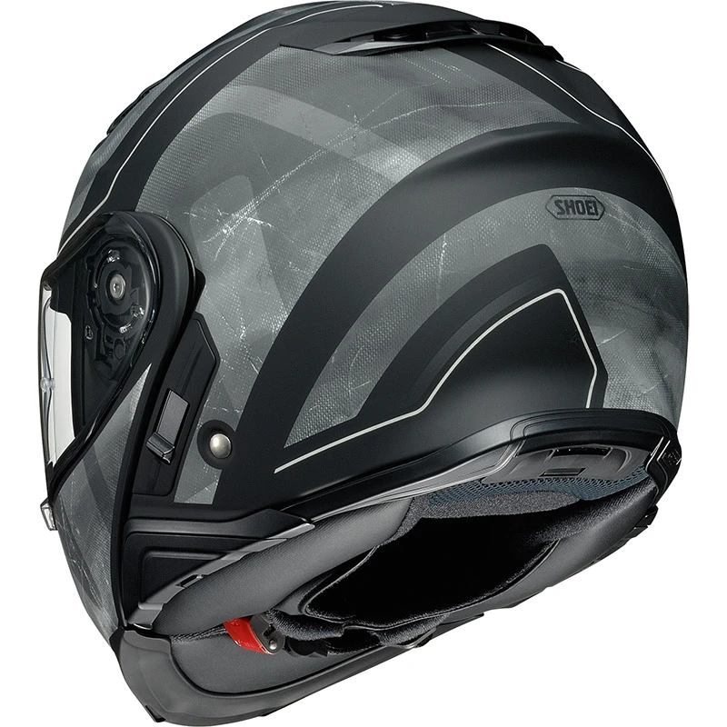 Neotec II è presentato in 7 colori e 3 varianti grafiche con una calotta dal design aggressivo e compatto, nuova la soluzione adottata per i guanciali dotati di “Noise Isolator”(barriere del suono) – che limita l’ingresso dell’aria dal basso e la presenza nella parte del mento di uno spoiler (Aero Deflector) – tutti testati nella galleria del vento di proprietà – per una guida più rilassata e priva di turbolenze. Inoltre Neotec II è predisposto al montaggio del Sistema di comunicazione SENA SRL (SHOEI RIDER LINK), che risulta essere perfettamente integrato con la calotta, evitando l’applicazione di centraline esterne.