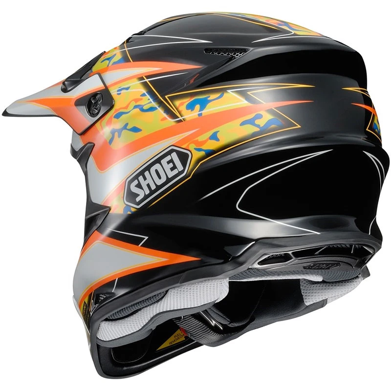 Shoei CASCO OFF-ROAD PROFESSIONALE Indossa un casco off-road professionale SHOEI e lasciati la tua routine quotidiana alle spalle. Sono il top per protezione, sicurezza e comfort. Il nuovo VFX-W sta sconvolgendo il pianeta! Possiede un look completamente nuovo, estremamente sportivo, un frontino extra-large e una visibilità eccezionale. Il VFW-W è una nuova concezione di casco da cross, nuovo in ogni aspetto. Naturalmente, sono mantenuti tutti gli standard e le caratteristiche SHOEI, con grafiche dettagliate che lo rendono ancor più attraente! Calotta in AIM+ Calotta interna EPS a due densità. EQRS (Emergency Quick Release System) è il sistema di emergenza studiato per rimuovere i guanciali in caso di incidente. Chiusura a doppio anello 4 differenti misure di calotte esterna Taglie XS-XXL Guanciali 3D Max-Dry completamente asportabili e lavabili Imbottitura central 3D Max-Dry completamente asportabile e lavabile Imbottitura copri cinghietta Max-Dry completamente asportabile e lavabile Prese ed estrattori d’aria multipli studiati per essere estremamente facile da pulire Numerosi ingressi d’aria nella zona frontale e superiore del casco Uscite d’aria nella parte posteriore del casco Calotta dalla forma completamente nuova, in un design estremamente sportivo con spoiler integrati per una aerodinamica e prestazioni avanzate Nuova forma di frontino, extra large per una protezione ottimale dal sole e dal fango Mascherina dalla forma aggressiva.